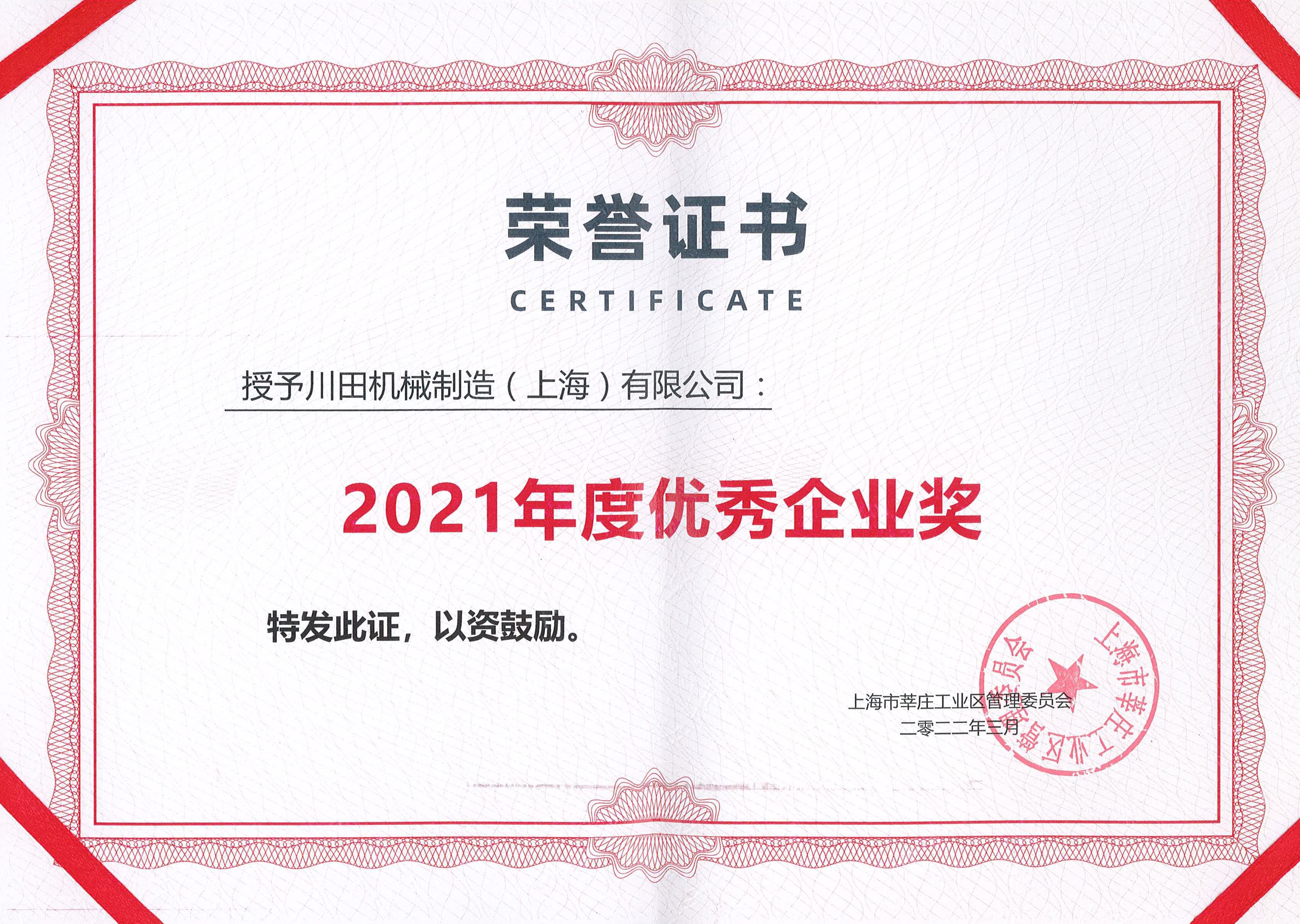2021年度莘庄工業区優秀企業証書